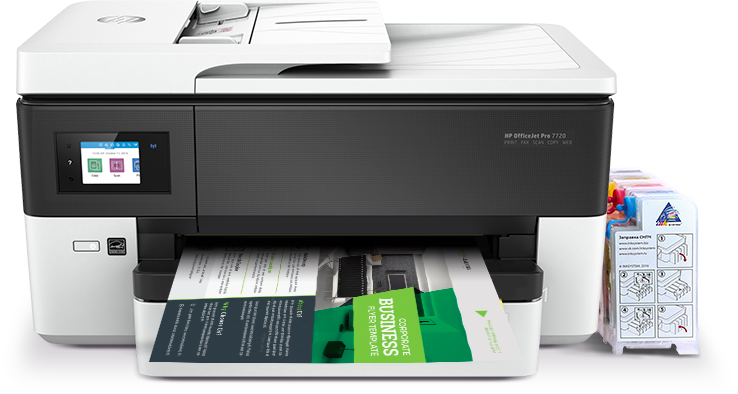 Приобретая HP Office Jet Pro 7720 с СНПЧ, чернилами и бесчиповой прошивкой в комплекте вы сможете приступить к работе без отлагательств. Нет необходимости искать на сайтах производителей дорогостоящие заводские расходники. У вас есть все составляющие для производства качественных печатных материалов в течение длительного времени. Бесчиповая прошивка позволяет использовать разные расходники и сократит время обслуживания.