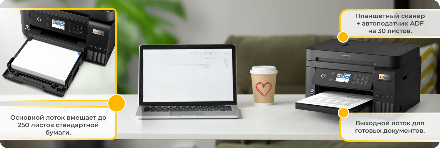 Для Epson EcoTank L6270 доступна широкая линейка чернил INKSYSTEM разного объёма. С ними устройство стабильно работает, а документы, фотографии и копии получаются четкими и насыщенными.
