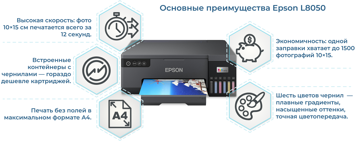 Брал для фотостудии — справляется с объёмами без проблем. Чернила оригинальные, не выцветают. Epson L8050 — надёжный и профессиональный инструмент