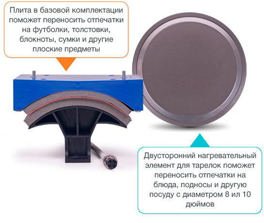 | Назначение | Термоперенос на плоские, цилиндрические поверхности, тарелки, кепки |